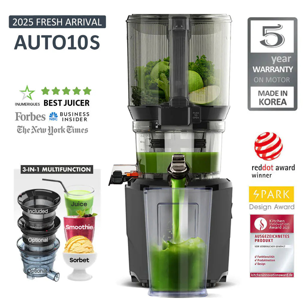 I have been using Kuvings juicer fro the past 10 years and now I have purchased the AUTO10. Loving it, easy to use, clean and the best part is there’s no need to cut the fruits :)
