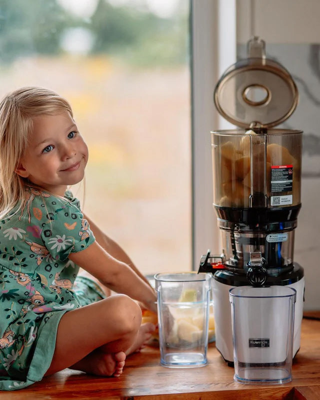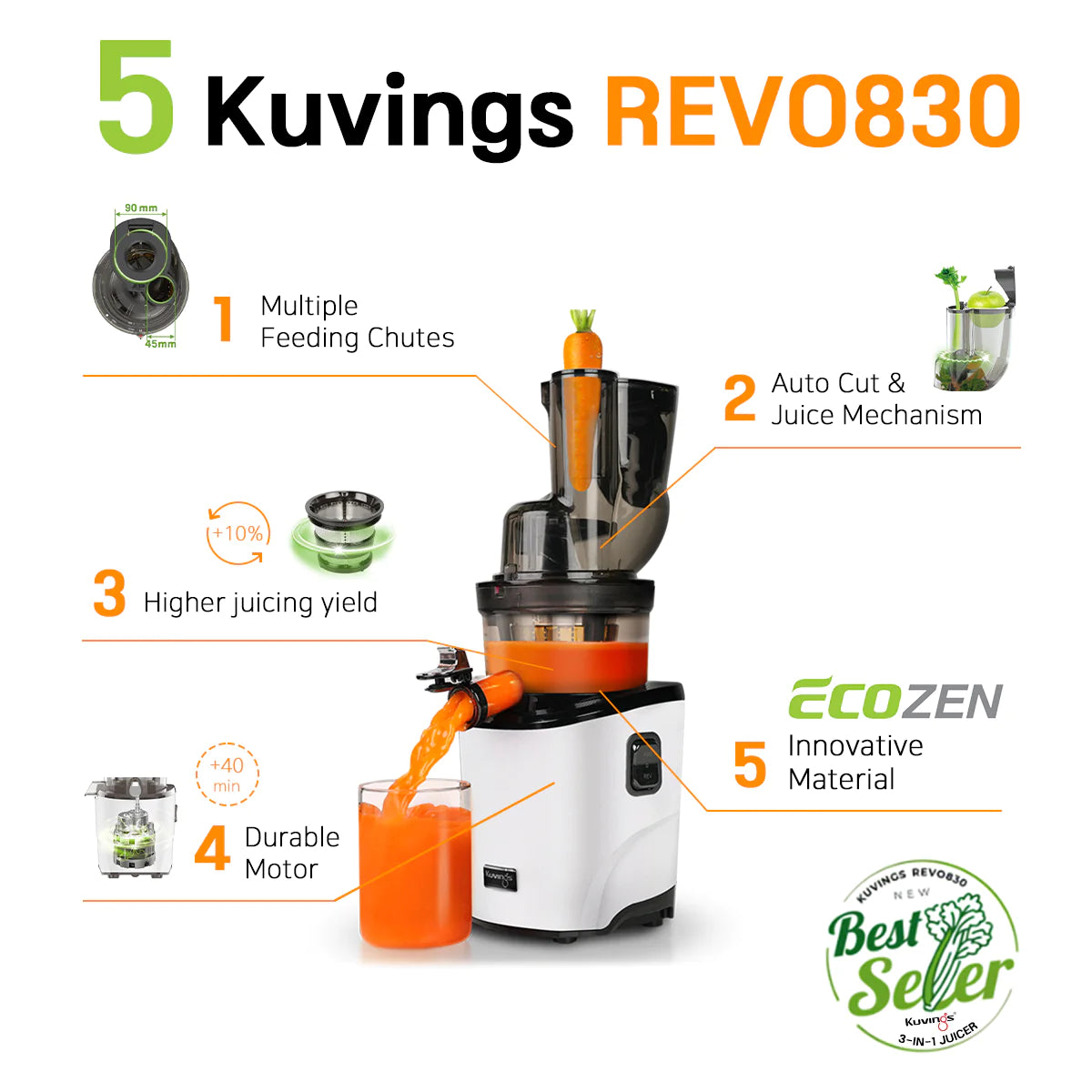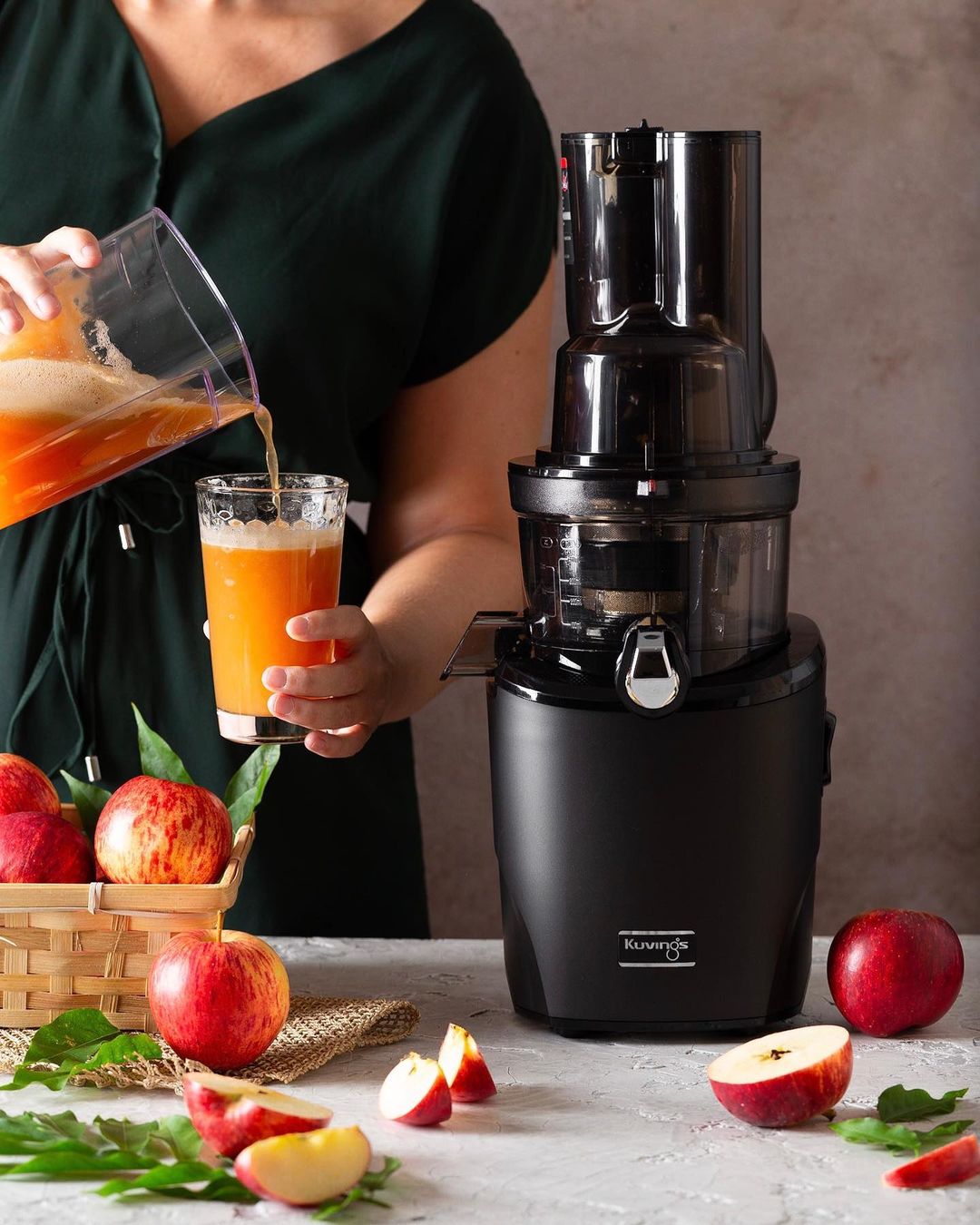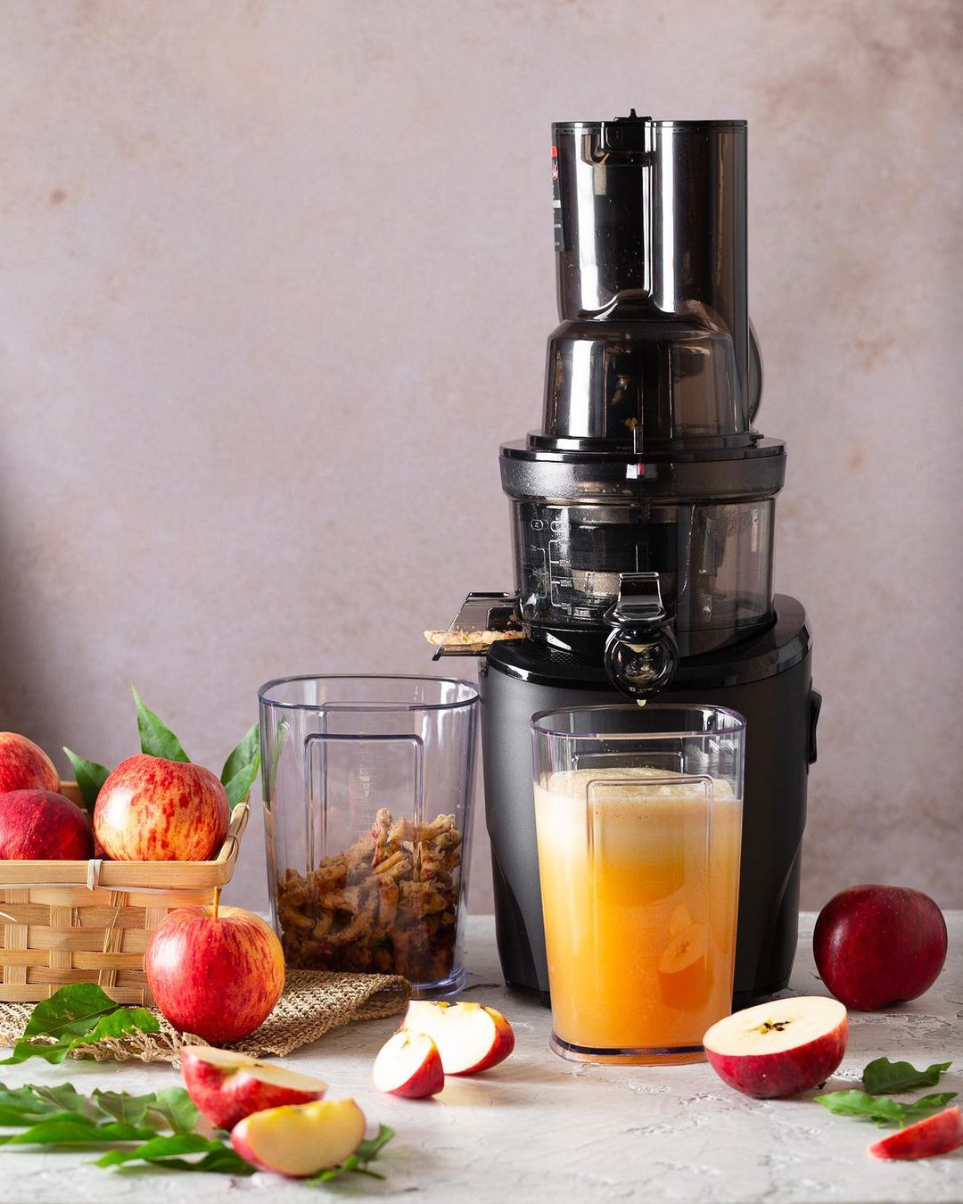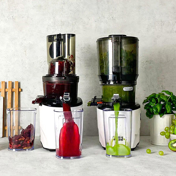تغذي عصارة REVO830 المكونات الطويلة والعريضة في برغيها القاطع التلقائي، مما يوفر عليك وقت التحضير والتنظيف. بالإضافة إلى ذلك، تقوم عصارة الضغط البارد هذه بتحضير شربات صحي وحليب الجوز والعصائر!