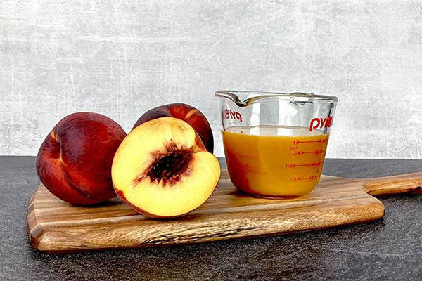 2 ½ peaches (pits removed) = 1 cup of peach juice.