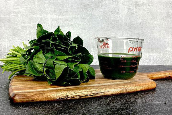 1 ½ bundles of spinach = 1 cup of spinach juice.