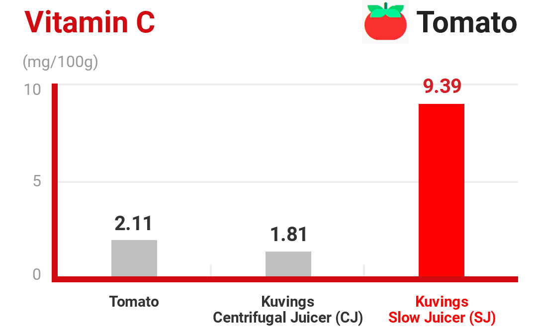 is 5.2 times higher than the vitamin C in the juice of a centrifugal juicer.