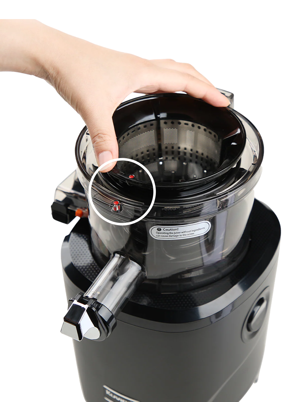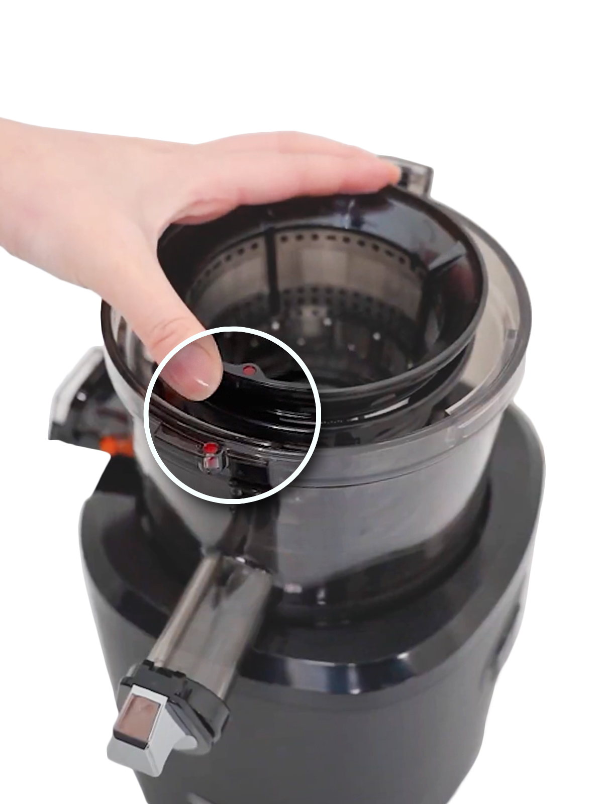 By applying an automatic cutting mechanism, the double crushing blade of the upper container is designed to automatically cut the entire input material and quickly transfer the cut material to the juicer.
