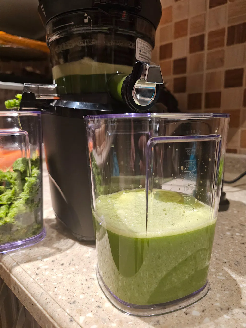 It’s incredibly efficient with minimal wastage and runs so quietly. The quality of the juice is fantastic — even my kids happily drink the vegetable juice!